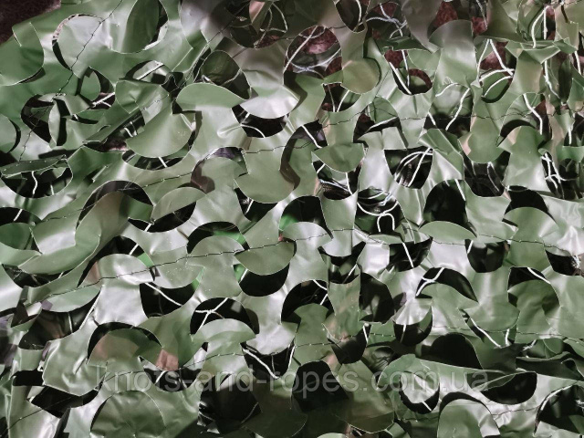 Односторонняя маскировочная сетка, представляет собой универсальную легкую и прочную синтетическую сетку. Матированная полимерная пленка окрашенная в массе, с добавлением антипиренов на сетчатой полиамидной основе. Не подвержена гниению, имеет высокую стойкость к ультрафиолету, не выгорает. И самое главное, выдерживает экстремальные температуры от -40 до +50°С.