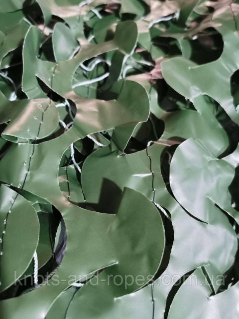 Односторонняя маскировочная сетка, представляет собой универсальную легкую и прочную синтетическую сетку. Матированная полимерная пленка окрашенная в массе, с добавлением антипиренов на сетчатой полиамидной основе. Не подвержена гниению, имеет высокую стойкость к ультрафиолету, не выгорает. И самое главное, выдерживает экстремальные температуры от -40 до +50°С.