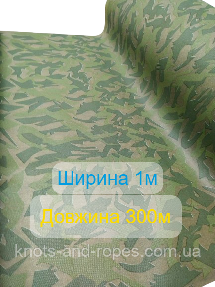 Очень легкий синтетический материал, который очень хорошо подходит для вязания маскировочных сеток. Так же, благодаря минимальному водопоглощению сетка не тяжелеет и легко собирается для транспортировки. В наличии есть зимние и летние варианты.